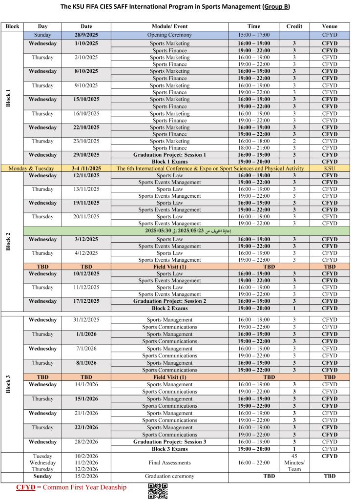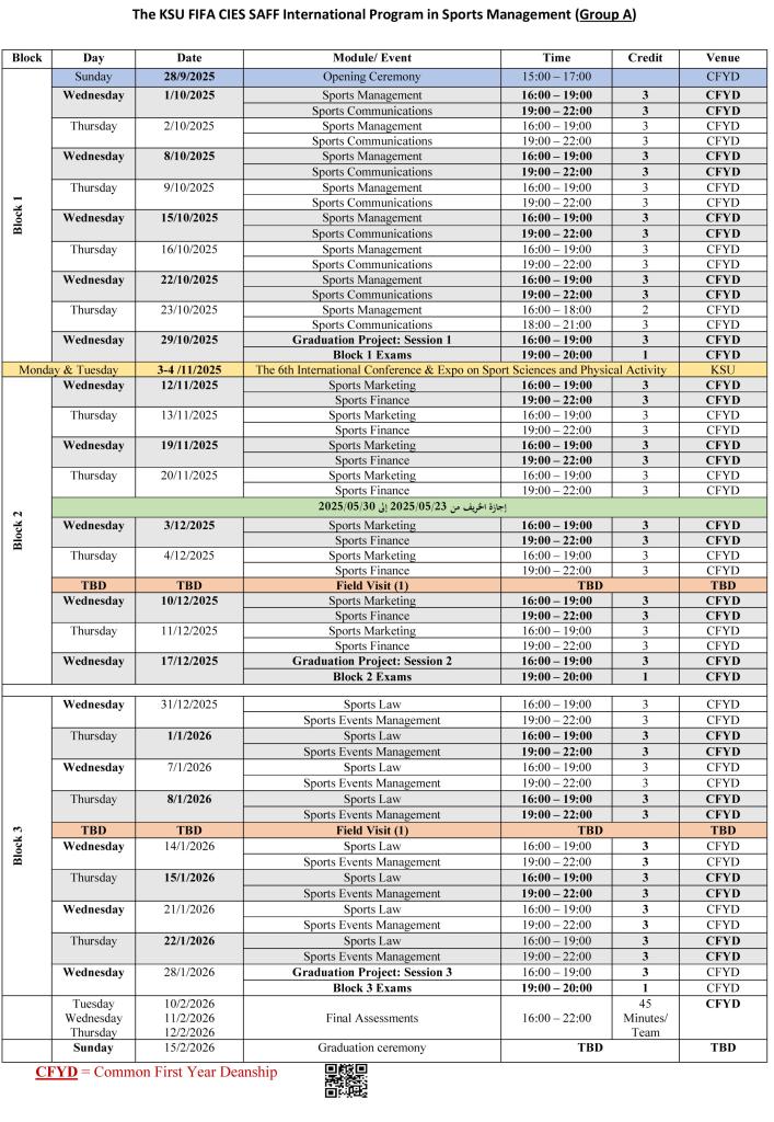 تعلن جامعة الملك سعود، بالتعاون مع الاتحاد السعودي لكرة القدم وبدعم من الاتحاد الدولي (FIFA) والمركز الدولي للدراسات الرياضية (CIES) عن انطلاق النسخة الأولى من برنامج شهادة الفيفا الدولية في الإدارة الرياضية. وتأتي هذه المبادرة ضمن استراتيجية الجامعة التي تحتل المرتبة العشرين عالميًا في تقديم هذا البرنامج، لتمنح الشهادة المعتمدة دوليًا بدءًا من أكتوبر 2025 عبر كلية علوم الرياضة والنشاط البدني، ويهدف هذا البرنامج البارز إلى تأهيل كوادر محترفة قادرة على قيادة وتطوير قطاع الرياضة محليًا ودوليًا من خلال تزويد المشاركين بأحدث المفاهيم والمهارات في مجال الإدارة الرياضية الحديثة